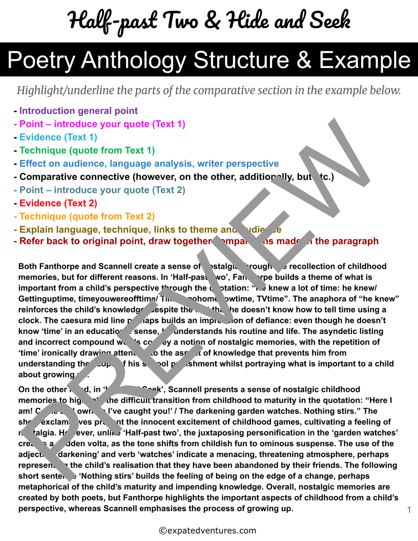- Example Poetry Anthology exemplar answer plus examiner commentary (in the notes of the slides)